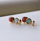 O Brinco Trilogia apresenta uma composição harmoniosa de turmalina rosa, água-marinha e pérola.